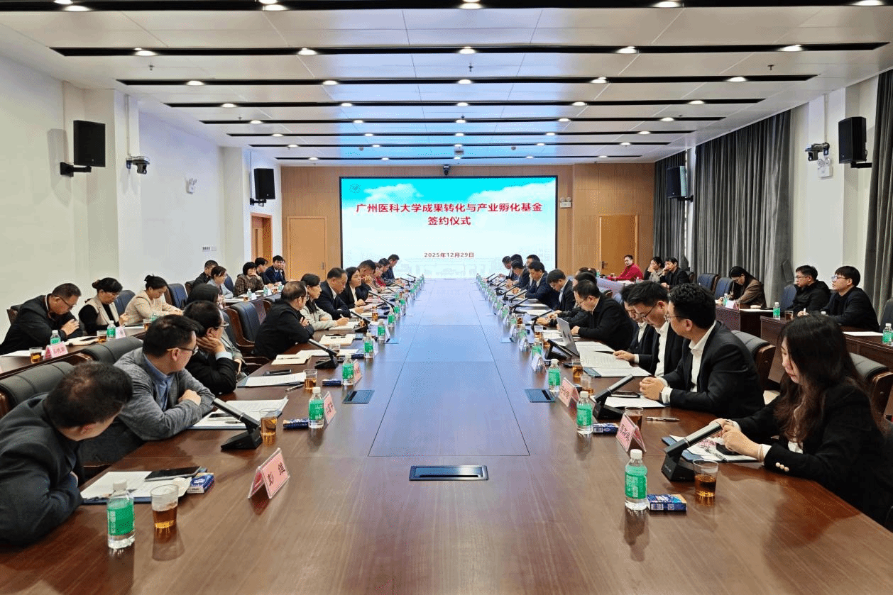 12月29日下午,广州医科大学在番禺校区举行成果转化与产业孵化基金签约仪式。来自政府部门、金融机构、产业界及校友代表共同见证。